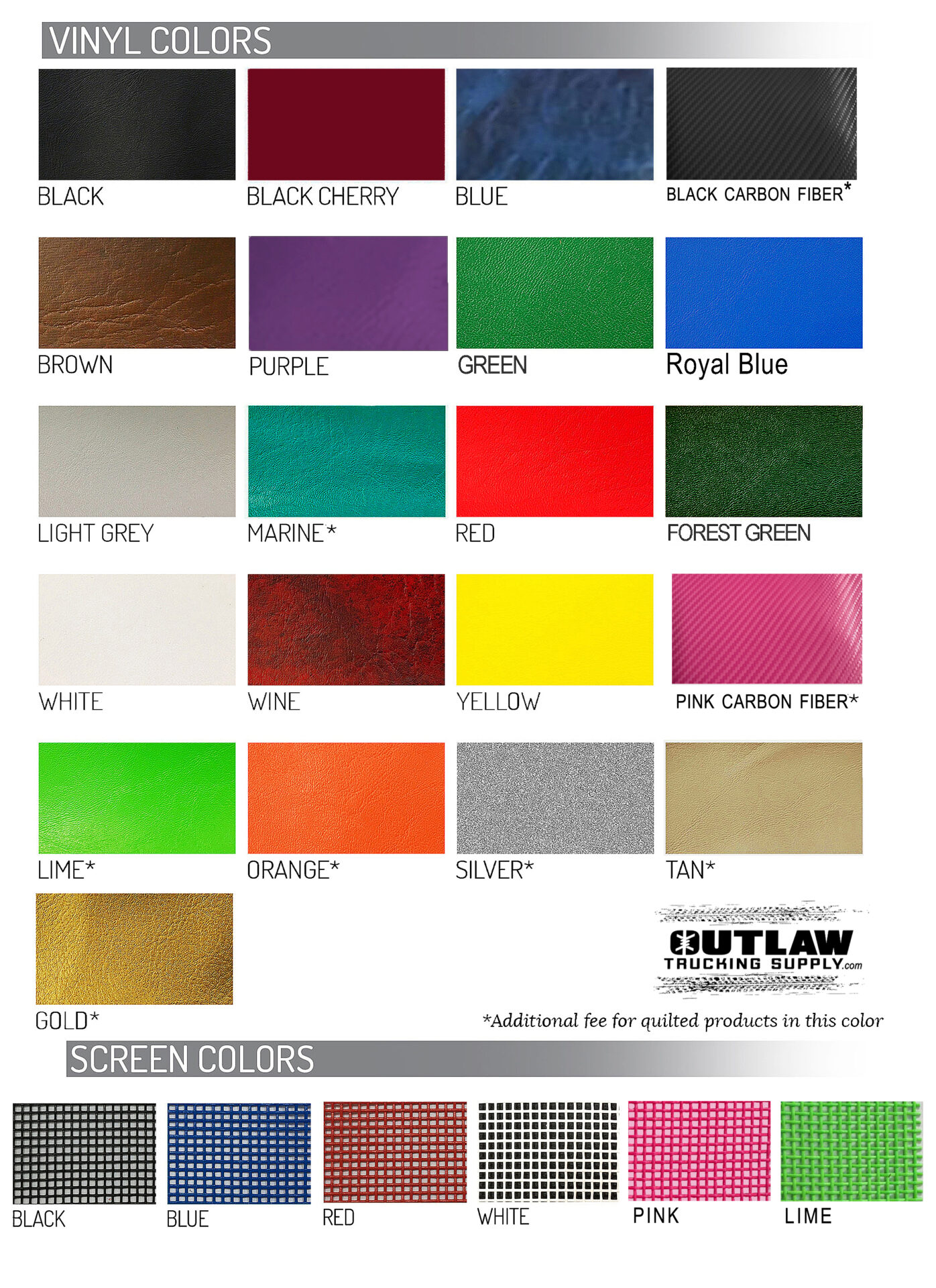 Heavy-duty marine grade vinyl and nickel plated brass fasteners. Available for all truck Makes/Models.